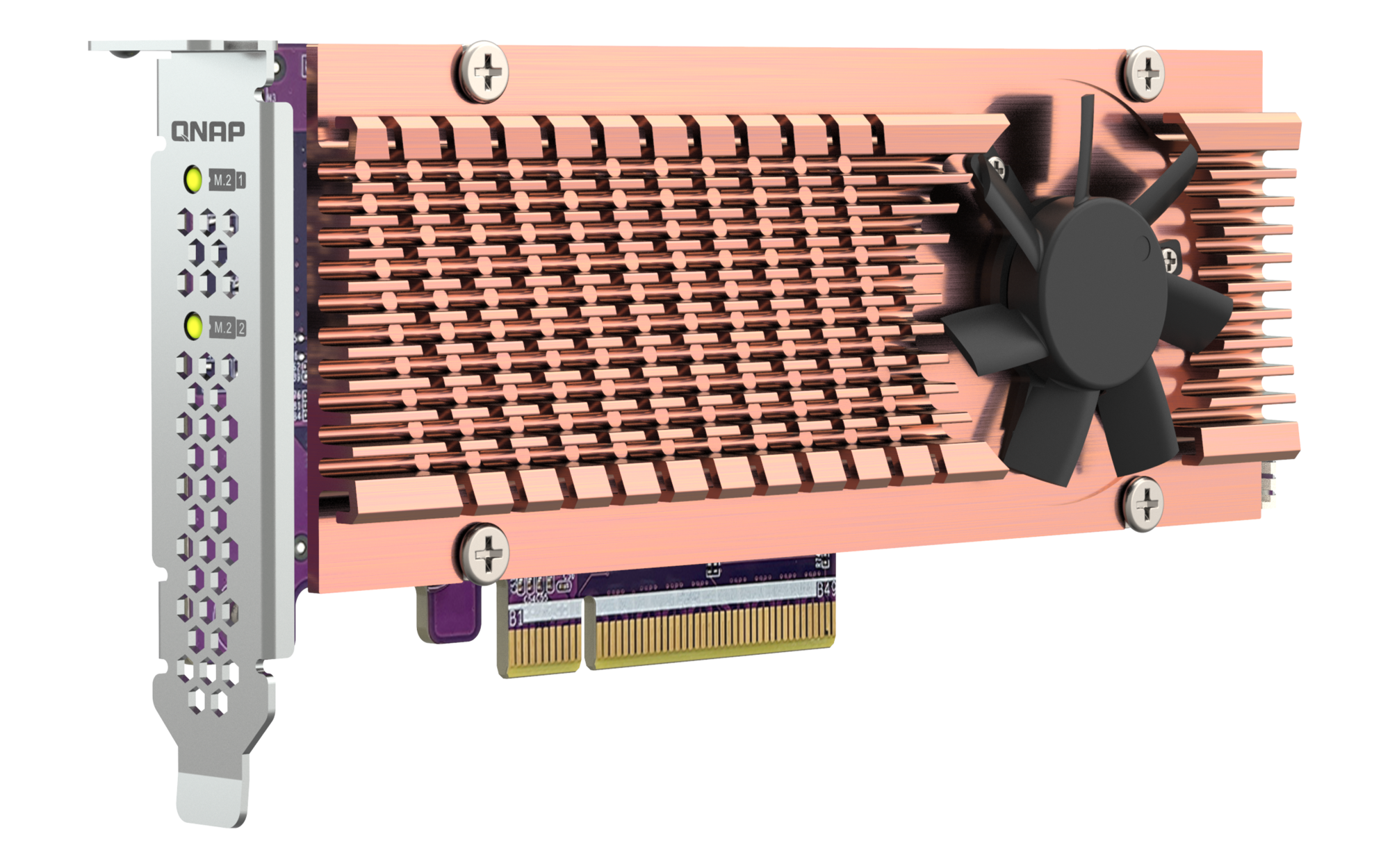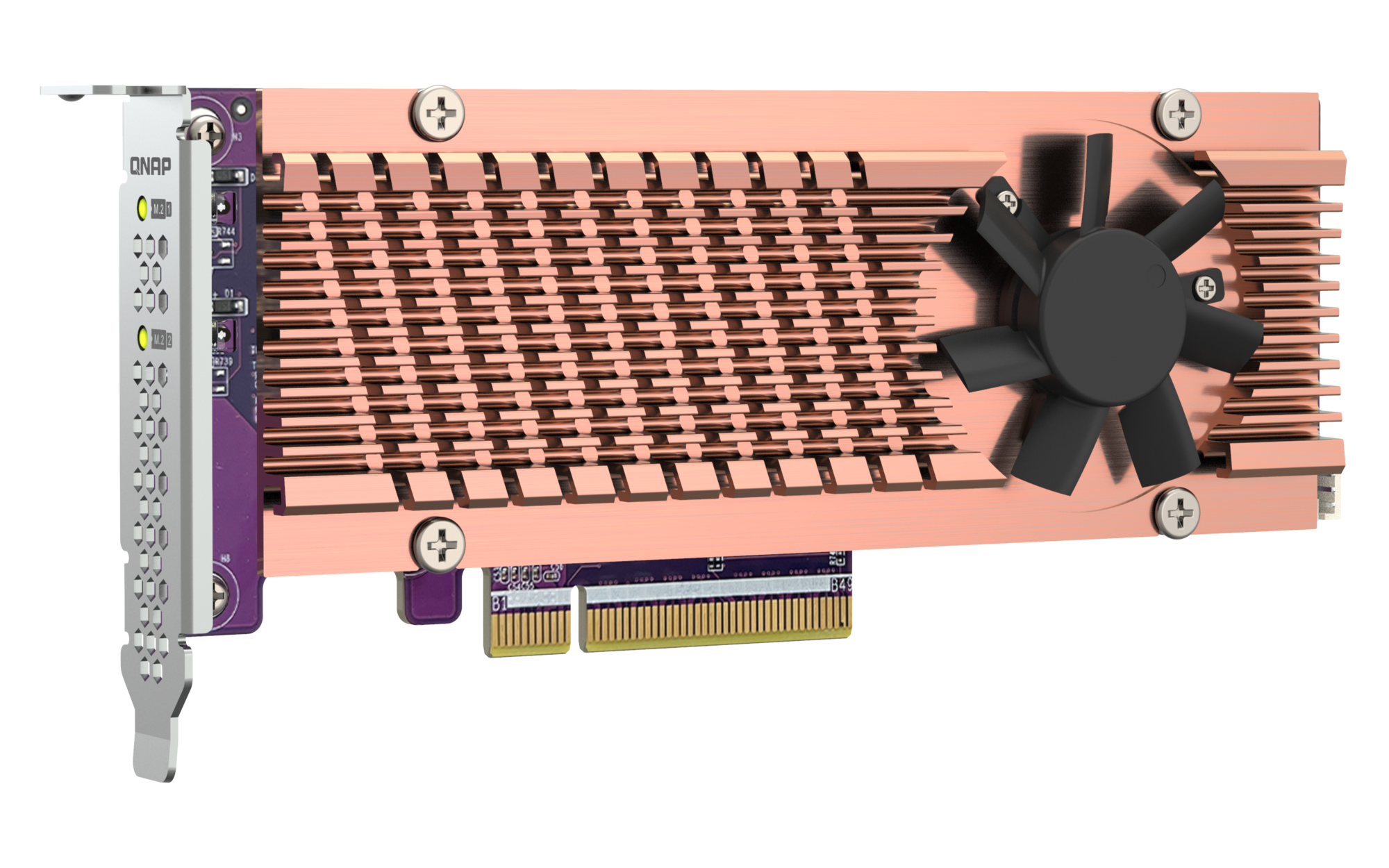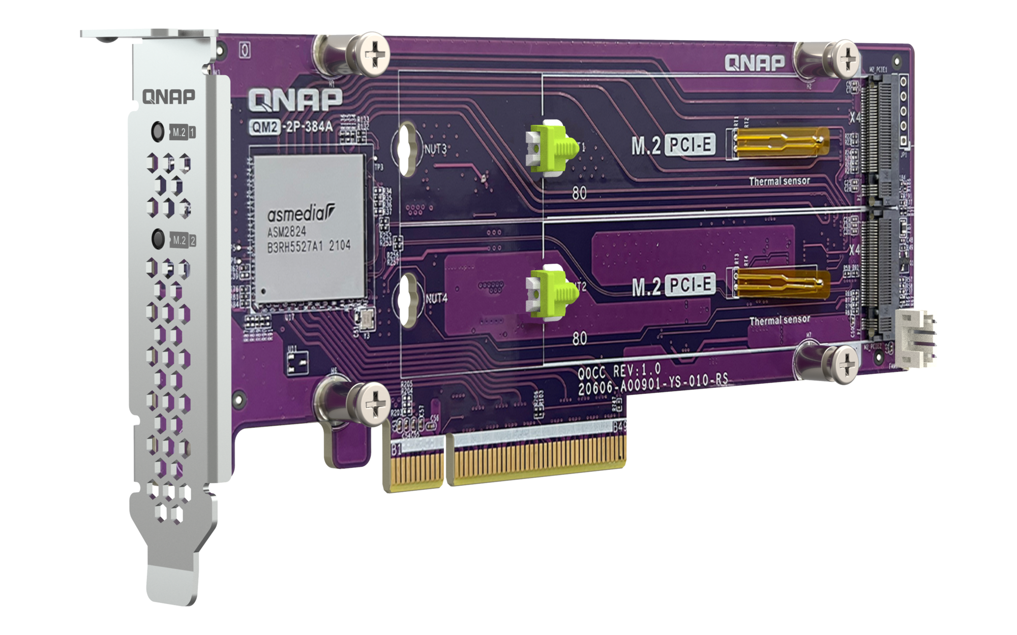 Add NVMe SSDs to your QNAP NAS with the QM2-2P-384A to increase storage capacity and boost performance.