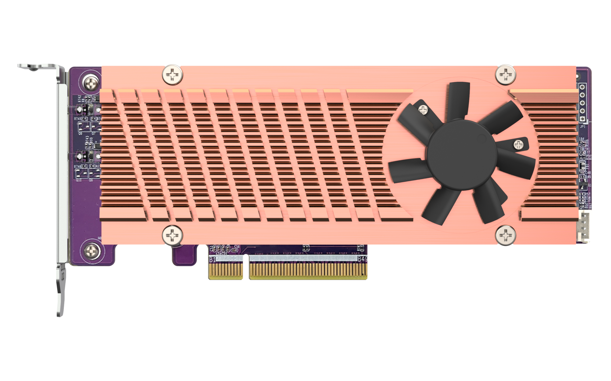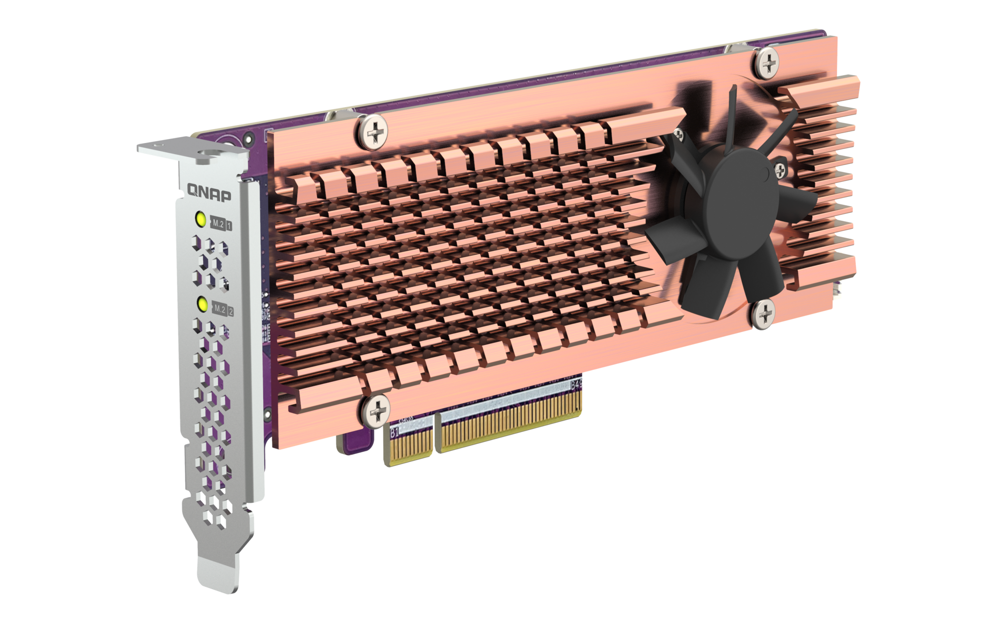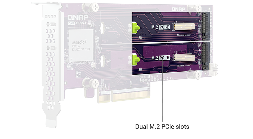 Add NVMe SSDs to your QNAP NAS with the QM2-2P-384A to increase storage capacity and boost performance.