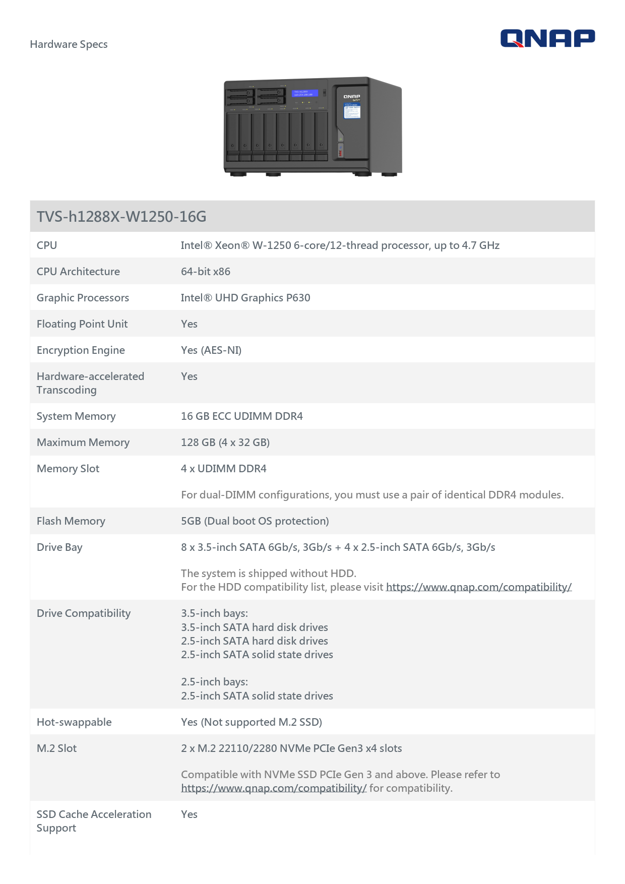 The high-capacity TVS-h1288X features a powerful Intel® Xeon® W processor and allows for installing two QNAP QXP-T32P Thunderbolt™ 3 PCIe expansion cards (sold separately) to attain four Thunderbolt™ 3 ports, making it a perfect match for Thunderbolt™-equipped Mac® and Windows® users for high-speed media collaboration. The built-in 10GbE and 2.5GbE connectivity supports Port Trunking and failover to further satisfy bandwidth and reliability demanding business applications. Running the ZFS-based QuTS hero operating system, the TVS-h1288X supports block-level inline data deduplication and compression, near-limitless snapshots, real-time SnapSync, and read/write cache technologies, helping your business achieve reliable service-level agreement performance, from creative workflows to file server, virtualization server, and efficient file backup and recovery applications.